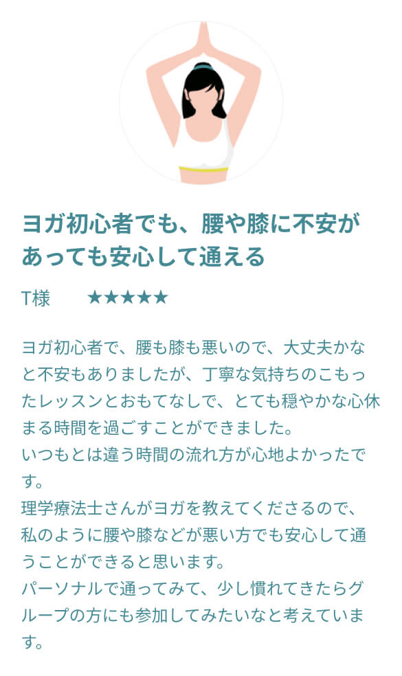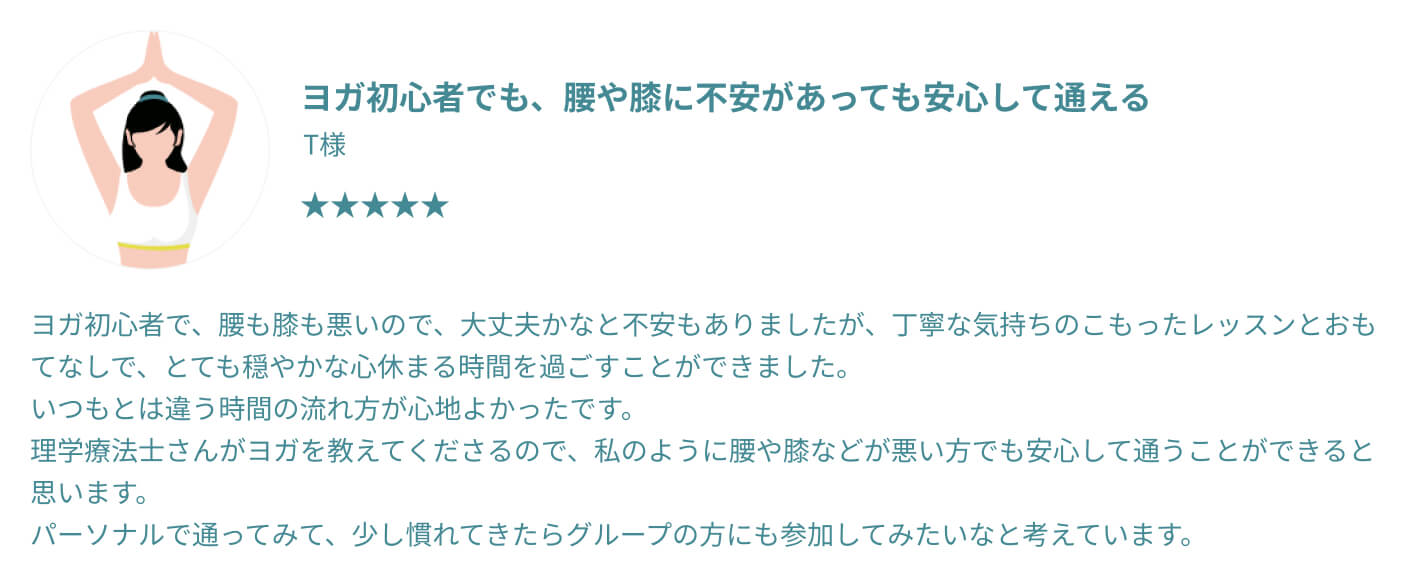 A.はい、もちろんです。当サロンは「ポーズの形」を追求したり、周りと比べたりする場所ではありません。理学療法士が「なぜ体が硬いのか、どこに不調の原因があるのか」を医学的に分析し、お一人おひとりに合わせた動かし方を指導します。