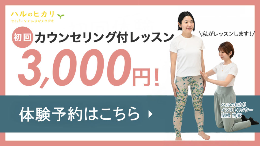 A.初回カウンセリング付レッスン(90分3,000円)では、現在の姿勢や動作の癖を詳しくチェックさせていただき、実際のセッションを体験していただきます。最後に、ご自宅でできる簡単なセルフケアのアドバイスもお伝えしております。